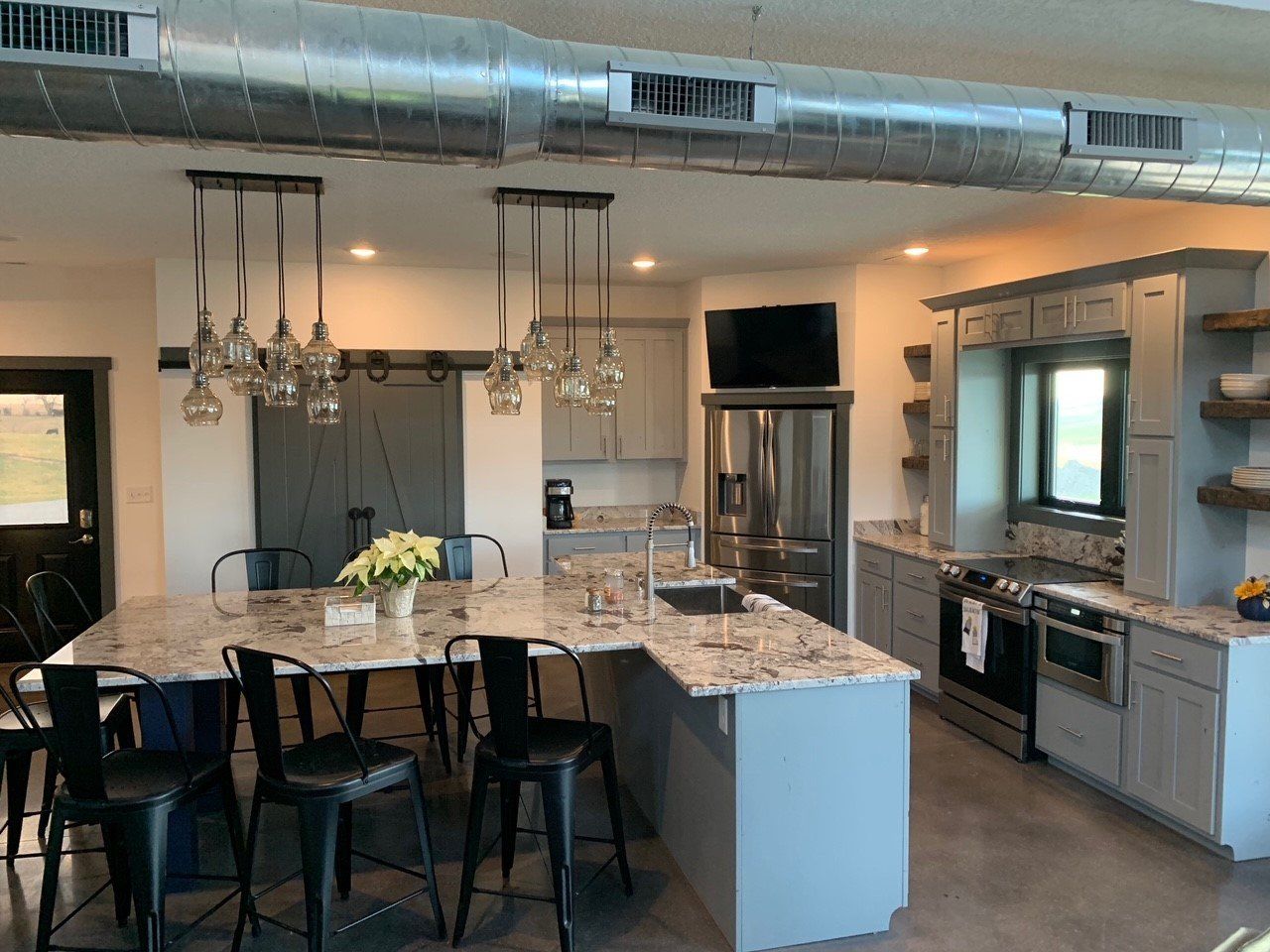 Alan and Amber have always had a passion for the city of New Sharon. In 2017, they felt compelled to transform a prominent eyesore at the heart of downtown, into something that better represented the community and its constituents. Seeing the potential to transform the landscape of downtown, the Lakes partnered with another couple in the area to purchase and completely renovate the entire building. Now named Cornerstone, the building includes four modern-industrial apartments and three commercial spaces.
